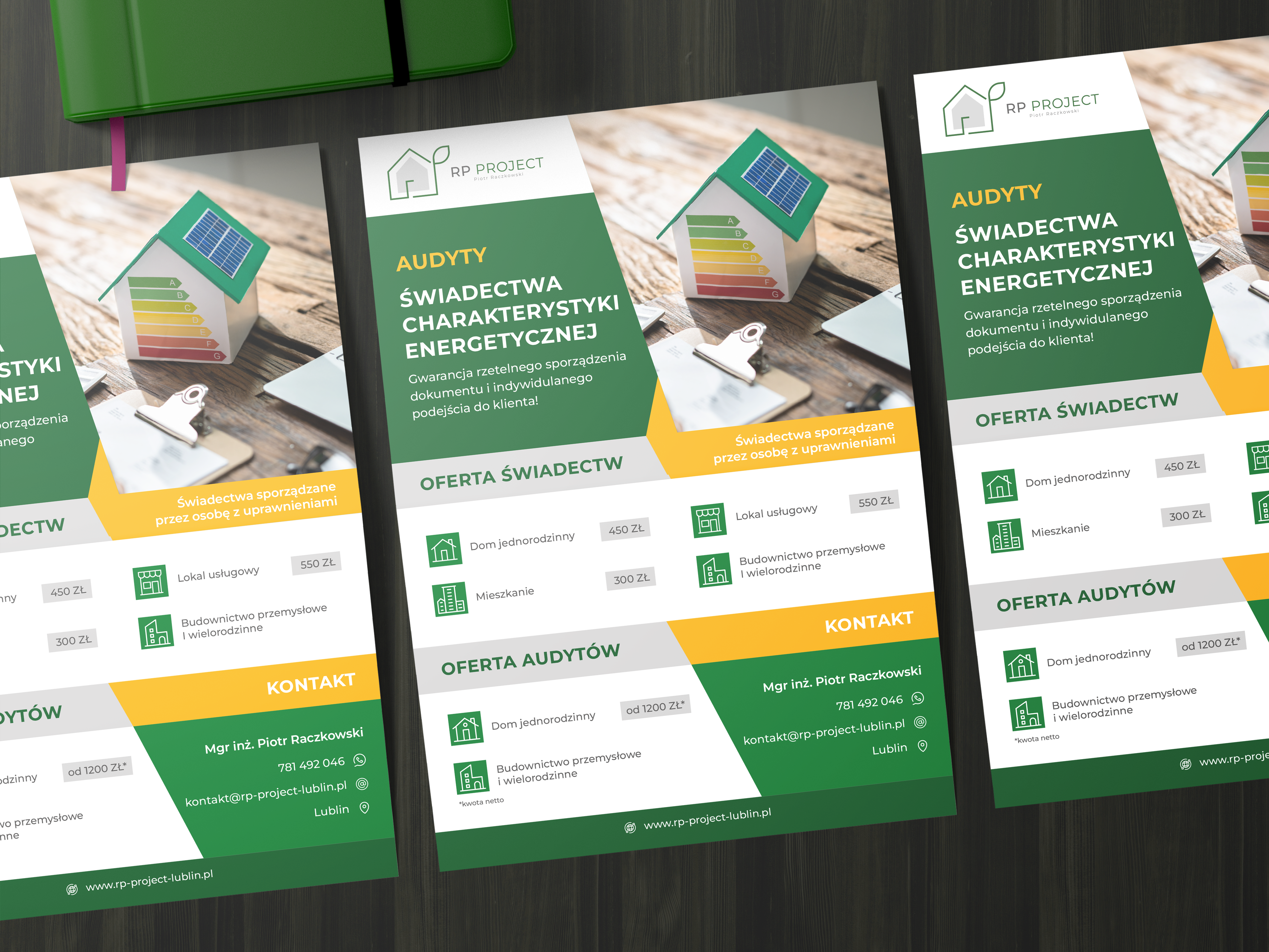 Projekt folderu w rozmiarze A4/A5.